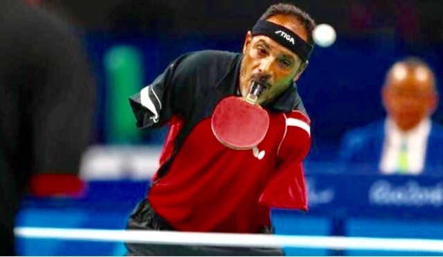 إبراهيم حمدتو أشهر لاعب تنس الطاولة بالفم إبراهيم الحسيني عبد الخالق الشهير بإبراهيم حمدتو لاعب المنتخب الوطني لتنس الطاولة البارالمبي ويعتبر أشهر لاعب تنس طاولة بارالمبي في العالم وذلك لممارسته تنس الطاولة بفمه. وتقام في الوقت الحالي منافسات دورة الألعاب البارالمبية. - صورة أرشيفية تصوير.